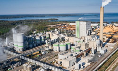 The site is also home to a pine sawmill that started operations in 2022. Close cooperation between the two facilities allows for highly efficient raw material utilization: the sawmill uses logs, while the pulp mill uses fiberwood, sawmill chips, and bark. In return, the sawmill receives its required energy from the pulp mill.